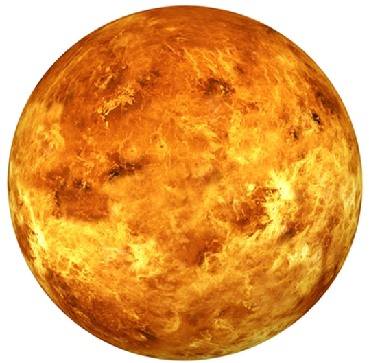 Vênus é o planeta mais quente do Sistema Solar, com temperaturas médias de cerca de 465°C — quente o bastante para derreter chumbo. Sua atmosfera é densa e composta quase totalmente por dióxido de carbono, o que causa um efeito estufa extremo. Curiosamente, Vênus gira no sentido contrário à maioria dos planetas, o que significa que o Sol nasce no oeste e se põe no leste. Um dia em Vênus é mais longo que um ano: ele leva 243 dias terrestres para girar em torno de si mesmo, mas apenas 225 dias para completar uma volta ao redor do Sol.