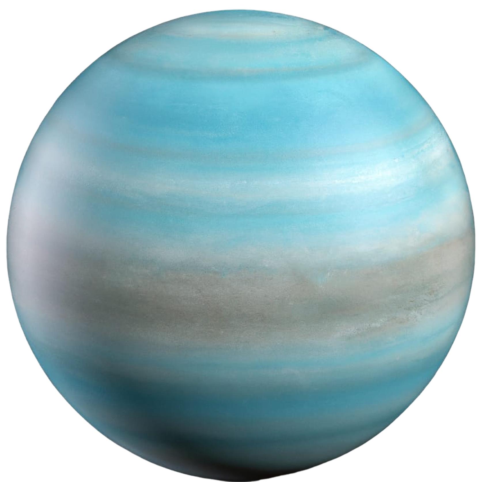 Urano é um planeta muito diferente: seu eixo é inclinado em 98°, o que faz com que ele gire de lado. Essa rotação peculiar provoca estações que duram cerca de 21 anos cada! Sua coloração azul-esverdeada é resultado da presença de metano na atmosfera, que absorve a luz vermelha e reflete tons azulados. Urano também é o primeiro planeta descoberto com o uso de um telescópio, em 1781, por William Herschel. Apesar de ser um gigante gasoso, acredita-se que tenha um núcleo rochoso cercado por uma mistura de gelo, amônia e metano.